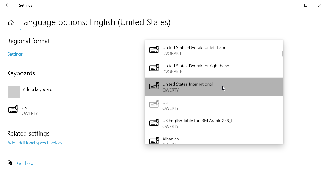 If you're not happy with this keyboard layout, you can easily switch back to your old one using the keyboard layout switcher (see Step 7). You can also completely remove the newly added keyboard layout by following Step 1–4, selecting “United States-International“, and removing it.